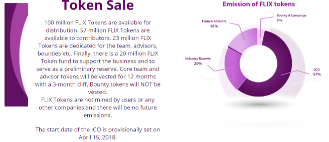 In all, there will be a total of 100 million FLIX tokens that will be created. Out of this, only 57 million coins will be made available to potential investors, while the rest will be saved for company members as well as for the creation of a reserve hold.